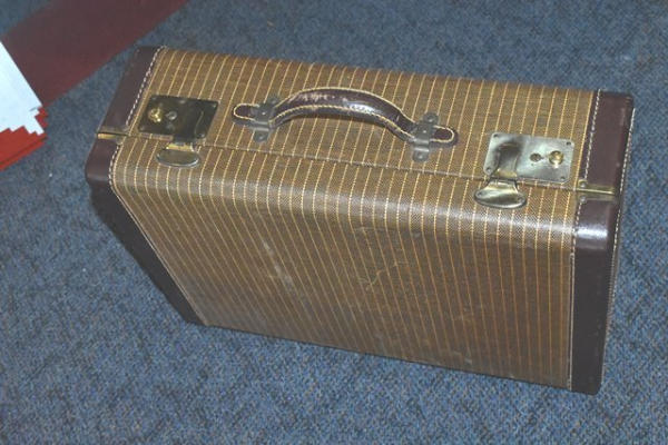 Tote lot consisting of dress shoes, EMM case, etc.