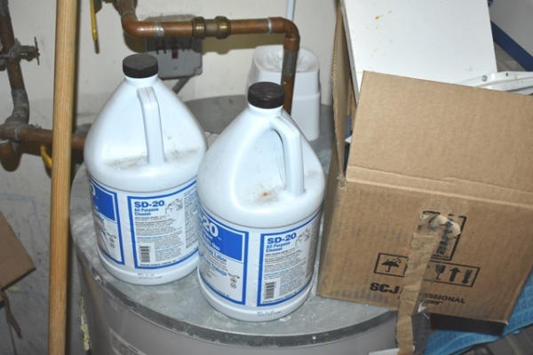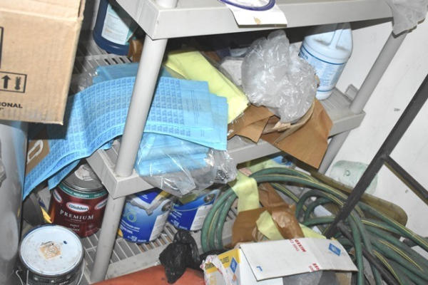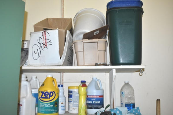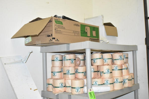 Closet lot consisting of assorted cleaners, toilet paper, etc.