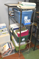 Shelving unit consisting of butterfly Dominos, butterfly puzzle, educational books and assorted washable chubby markers and school glue