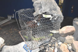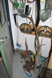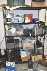 Shelf contents consisting of Chlorine Neutralizer, pumps, filters, etc.