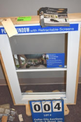 Closet contents consisting of window screen, glass shelves, misc. hardware