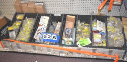 Large hardware lot consisting of turnbuckles, eye bolts, shelving brackets, hook latches