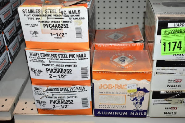 Shelf lot including aluminum nails
