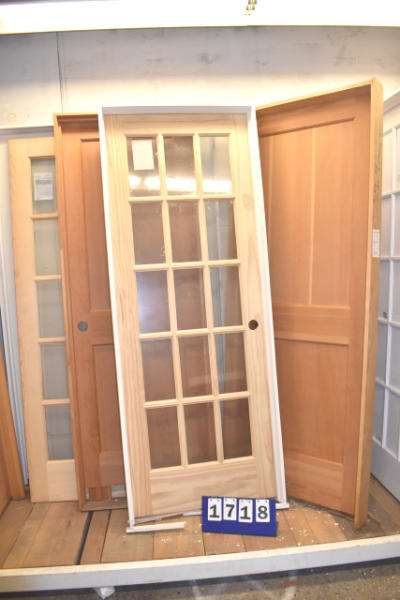 Assorted interior doors, 3 in frame, 1 is a door slab