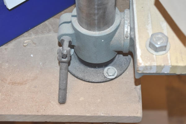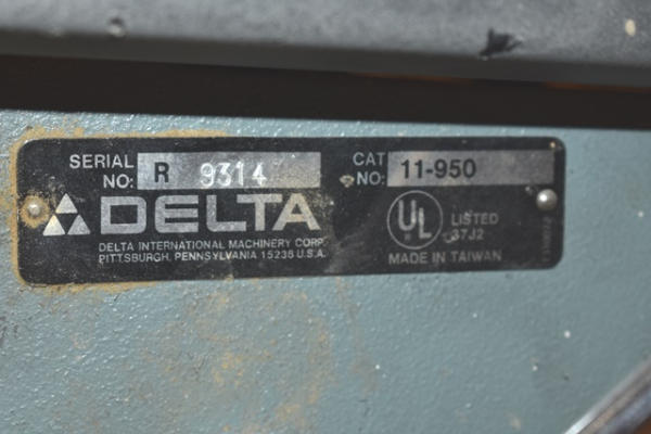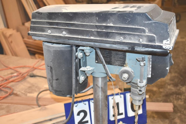Approx. 7' wooden work bench with Delta drill press bolted to it