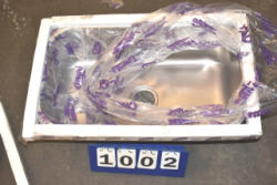 Lot of 3 Omni single bowl stainless steel sinks, overall outer dimension is 30"