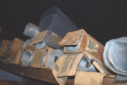 Contents of shelf including post trim ring, window blinds, etc.