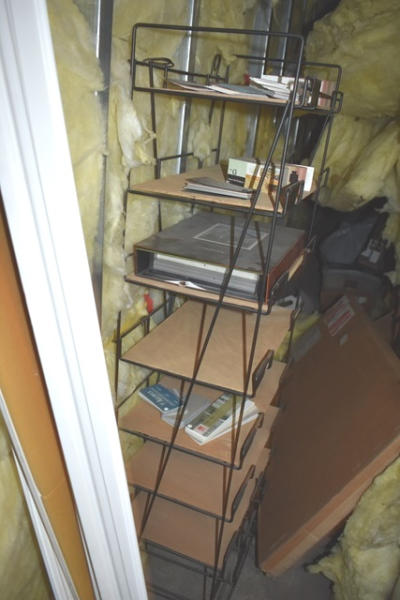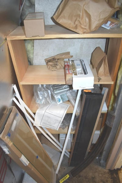 Closet contents consisting of window screen, glass shelves, misc. hardware