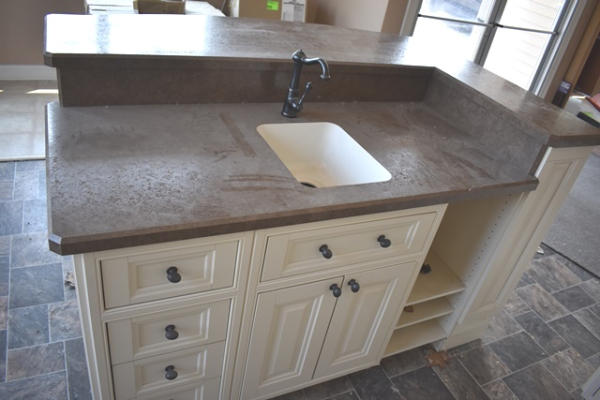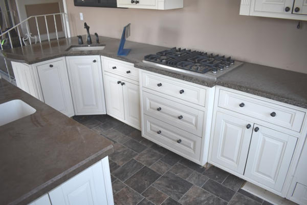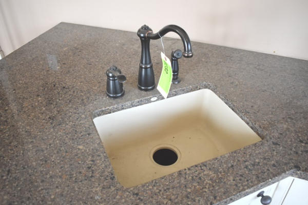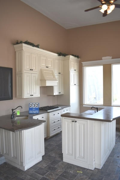 Display kitchen, overall length of main is approx. 164", includes cabinets, cooktop, island (approx. 69" long), both sinks