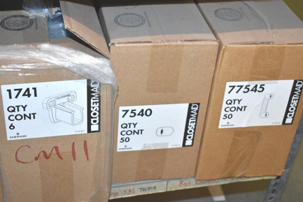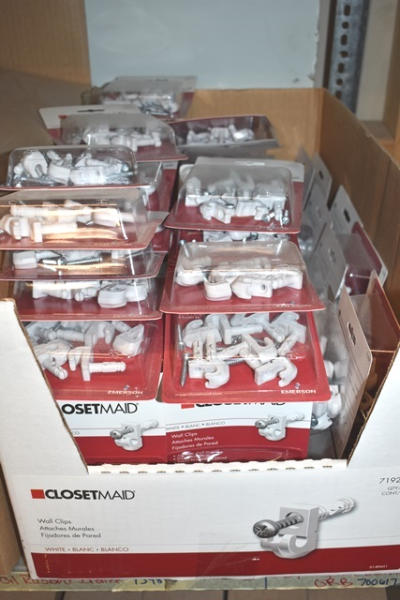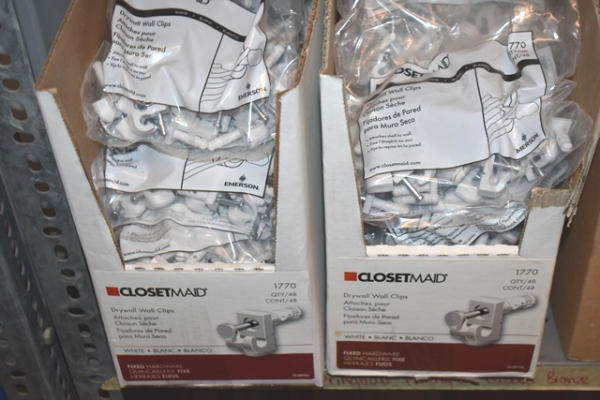 2 shelf lots of Closet Maid accessories including brackets, wall clips, etc.