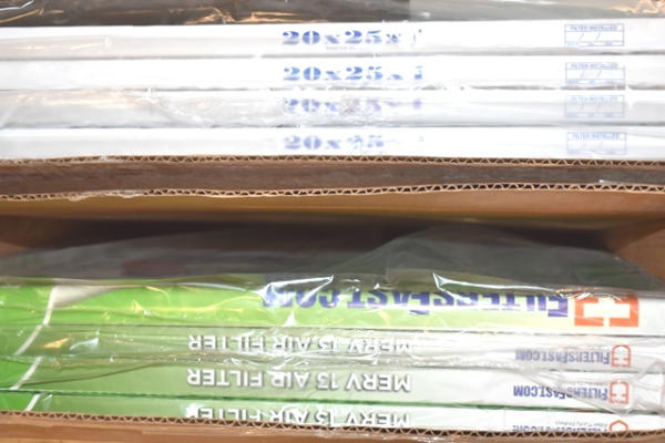 Lot of furnace filters, 16 x 20 x 2, 20 x 25 x 1 and 20 x 20 x 1