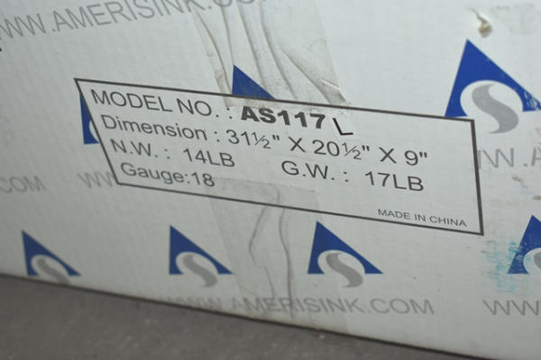 Under mounted stainless steel sink, 31 1/2" x 20 1/2"