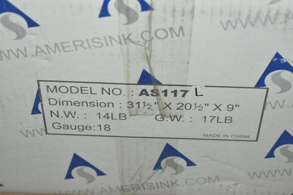 Under mounted stainless steel sink, 31 1/2" x 20 1/2"