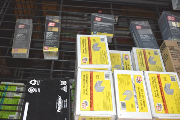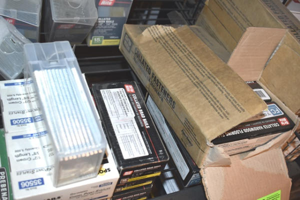 Shelf lot of pneumatic nails and staples