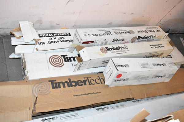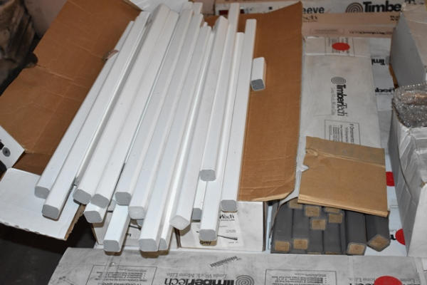 Large lot of Timbertech vinyl coated spindles, 42" post covers, post sleeves, etc.