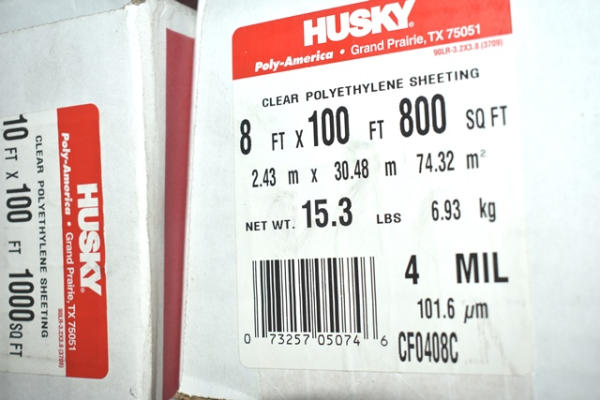 Lot of 4 boxes of plastic sheathing, 8' x 100', 4 mil