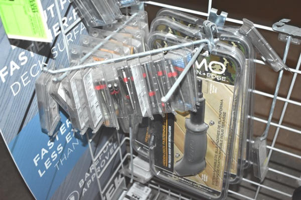 Azek Camo pvc hidden deck fastening system display rack with contents