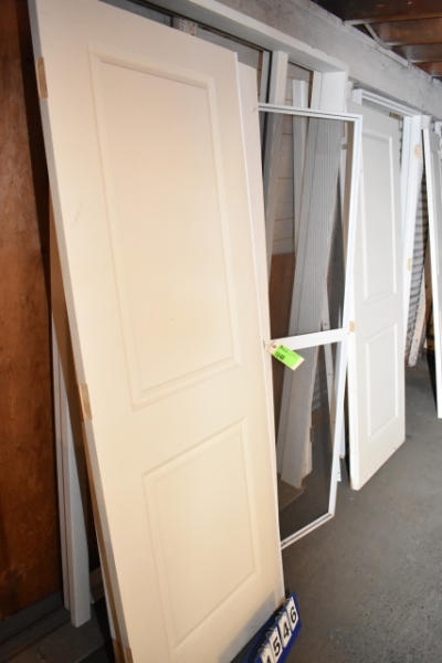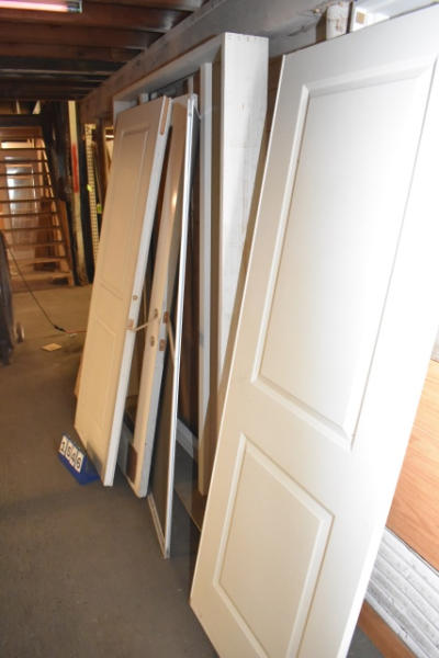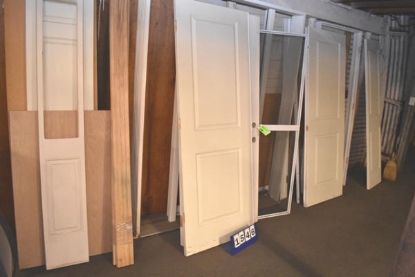 Lot consisting of door slabs, door frame, side lights, bifold door parts