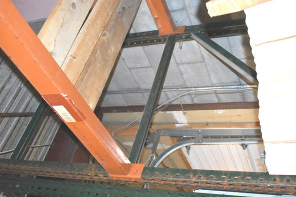 Pallet racking, 3 uprights, 4 cross braces (CANNOT BE REMOVED UNTIL LAST DAY OF REMOVAL)