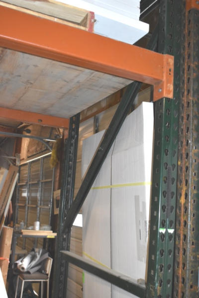 Pallet racking, 2 uprights, 2 cross braces (CANNOT BE REMOVED UNTIL THE LAST DAY OF REMOVAL)