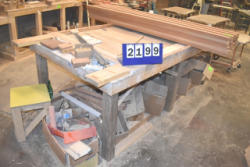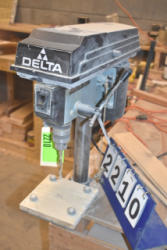Approx. 7' wooden work bench with Delta drill press bolted to it