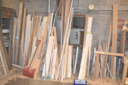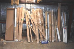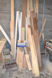 Lot of assorted door frame lumber, 2 x 4s, pine board, etc.