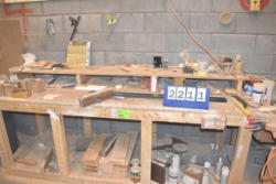 Under bench contents consisting of assorted door hardware, hinges, etc.