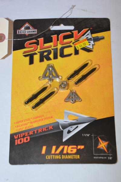 100 grain Slick Trick 1 1/16" cutting diameter Viper Trick 100 arrowheads
