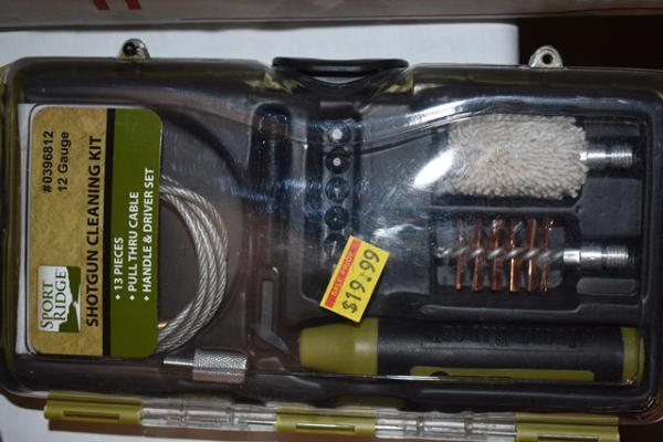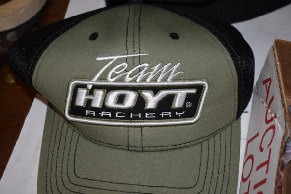 Lot includes Team Hoyt Archery baseball cap, shotgun cleaning kit, pistol cleaning kit, other firearms cleaning accessories