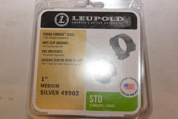 Lot consisting of one Leupold 1" Medium Silver 49902 Standard Scope ring and a Leupold 1" Medium Matte 49901 Standard Scope Ring