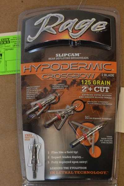 Set of Rage Slip Cam, Rear Deploying Broadheads, Hypodermic crossbow, 2 blade, 125 grain, 2" + cutting diameter