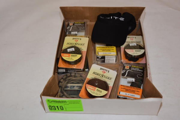 Lot includes Hoppes #9 bore snakes for .44, .45, 6MM, .240, .243, .244 calibers, etc.