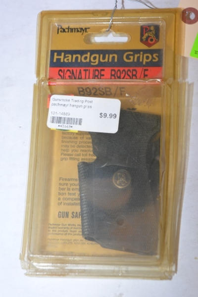 Pachmayr handgun grips, Signature B92SB/F, fits the Baretta 92F and its predecessor the B92SB, both with ambidextrous safety on the slide and mag. Mag release near trigger, trigger guard does not fit the 92FS model.
