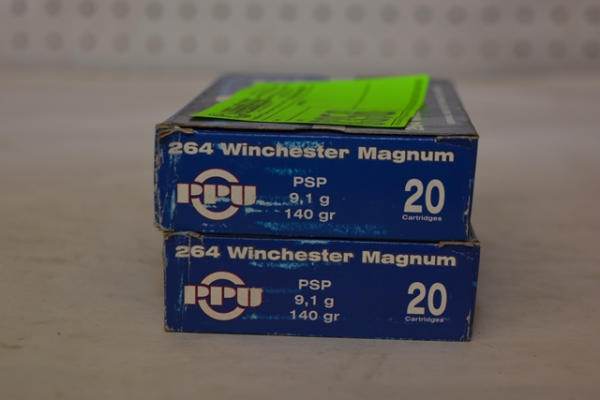 Lot of 2 boxes of PPU Ammunition, 264 Winchester Magnum, 140 grain, total of 40 rounds