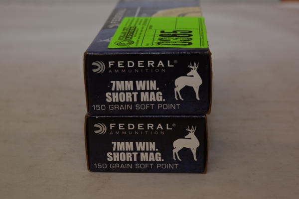 Lot of 2 boxes of Federal Ammunition, 7MM Winchester Short Mag, 150 grain, soft point, total of 40 rounds