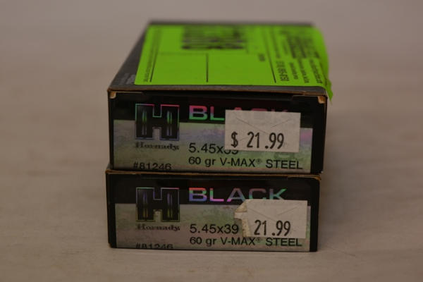 Lot of 2 boxes of Hornady Black Ammunition in 5.45 x 39MM, 60 grain, V-Max Steel, total of 40 rounds
