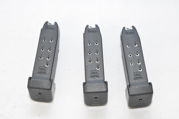 Lot of 3 9MM 10-round Glock magazines, double stack