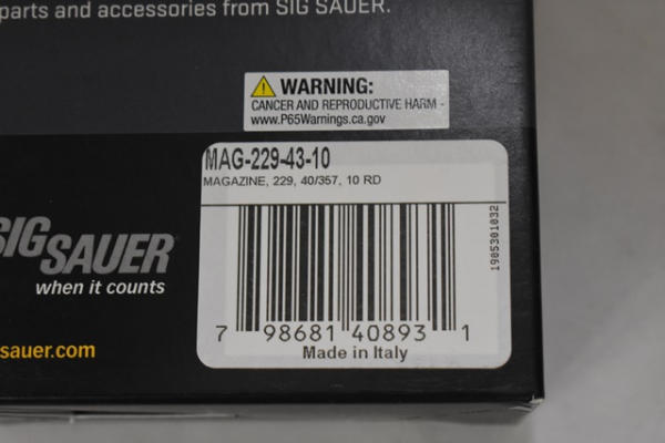 Sig Sauer P229 .40/.357 Sig 12-round magazine, NO NEW YORK SALES EXCEPT TO LAW ENFORCEMENT OR FFLs