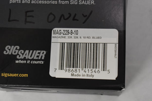 Sig Sauer P229-1 9MM 15-round magazine, NO NEW YORK SALES EXCEPT TO LAW ENFORCEMENT OR FFLs