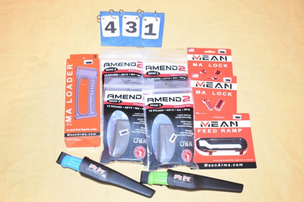 MA loader, (2) MA locks, MA feed ramp, (4) poly AR 15 10rd mags, (2) knives