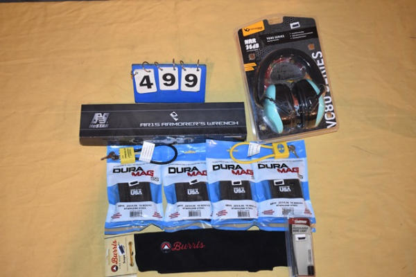 AR15 wrench, (4) AR15 mags, bore light, scope cover, (2) locks, earmuffs
