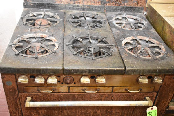 Universal Chef 6-burner stove with oven and approx. 24" griddle (approx. 60" overall length)