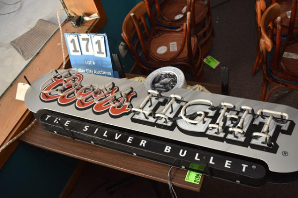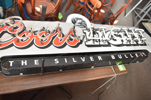 Coors Light Silver Bullet neon sign, approx. 59" x 22"