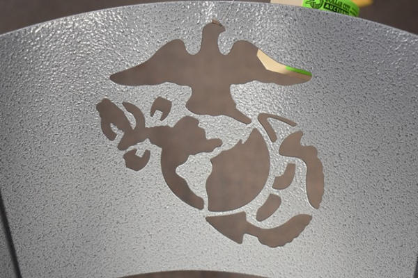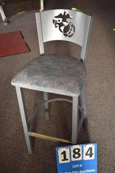 Bar stool with Marine Corp insignia in back