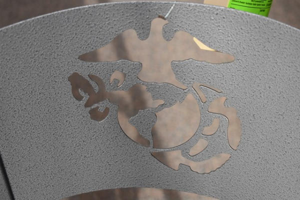 Bar stool with Marine Corp insignia in back