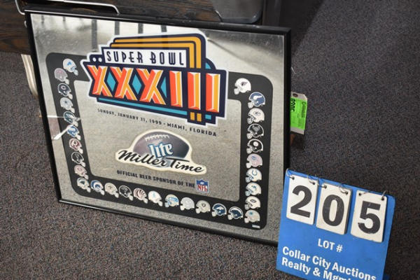 Super Bowl XXIII Miller Light Miller Time mirror, approx. 31" x 26", January 31, 1991
