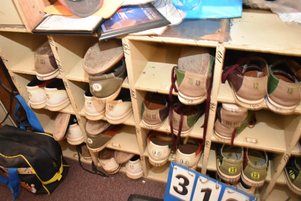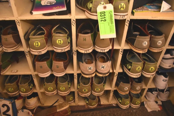 Lot of bowling shoes including sizes 11, 12, 13, 14, 15