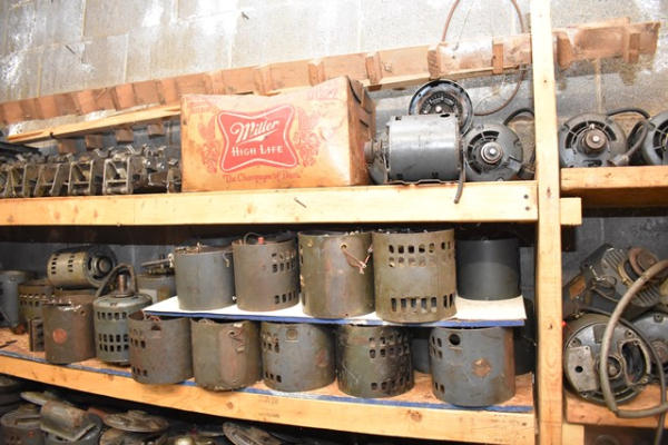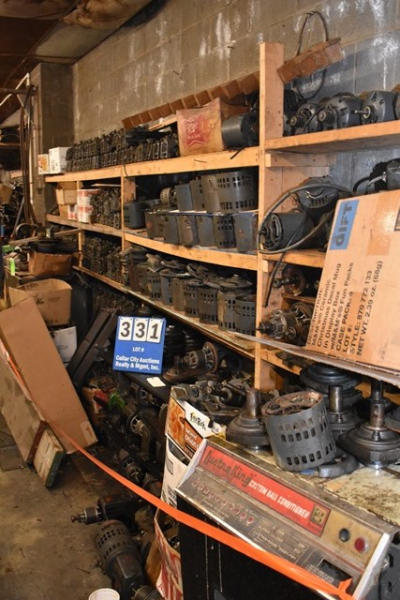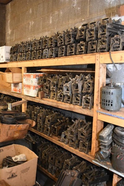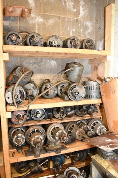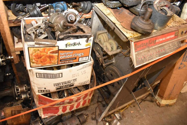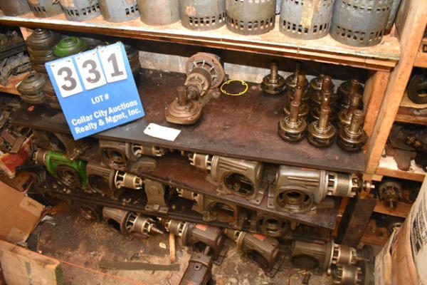 Large lot of AMF pin setter parts including bearings, gear boxes, electrical motor housings, brackets, adjustable rods