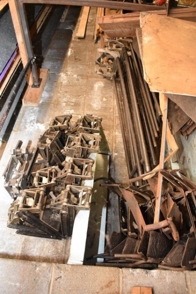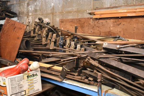 Large lot of AMF pin setter parts including rods, ball return parts, pin parts