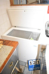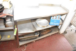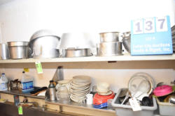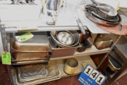 Contents of shelving unit, consisting of flatware, inset pans, frying pans, etc.